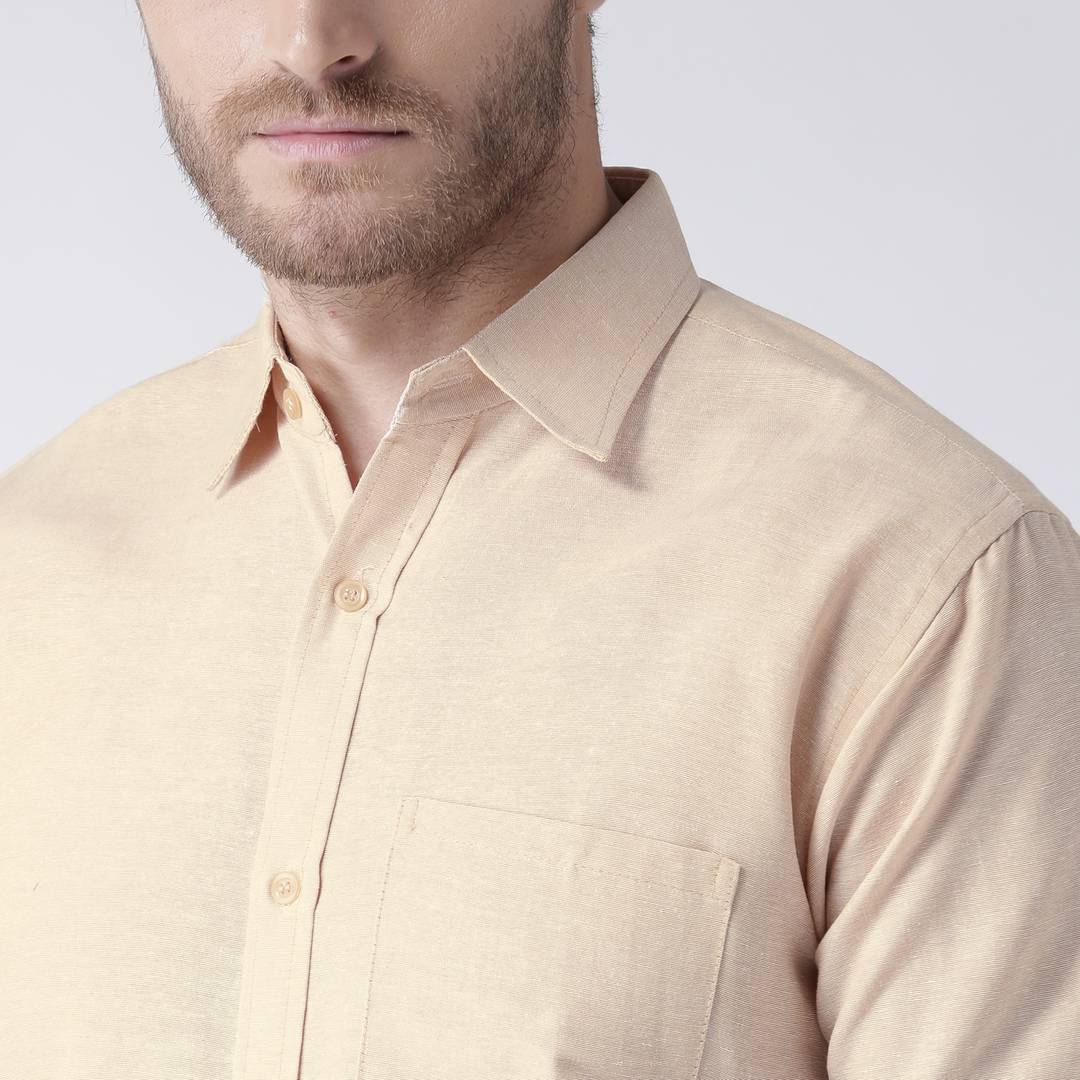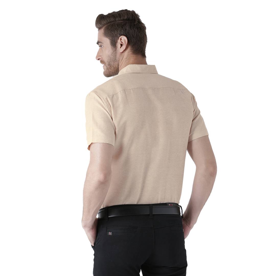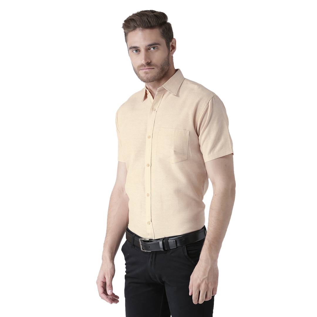Beige Cotton Half Sleeve Solid Formal Shirt