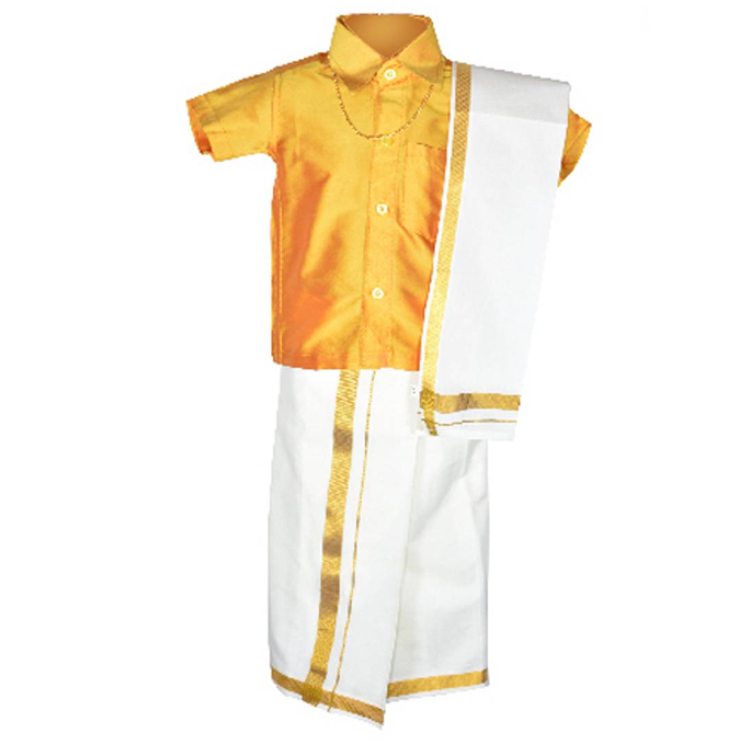 Chella Mapillai Boy's Golden Silk Blend Shirt and Dhoti
