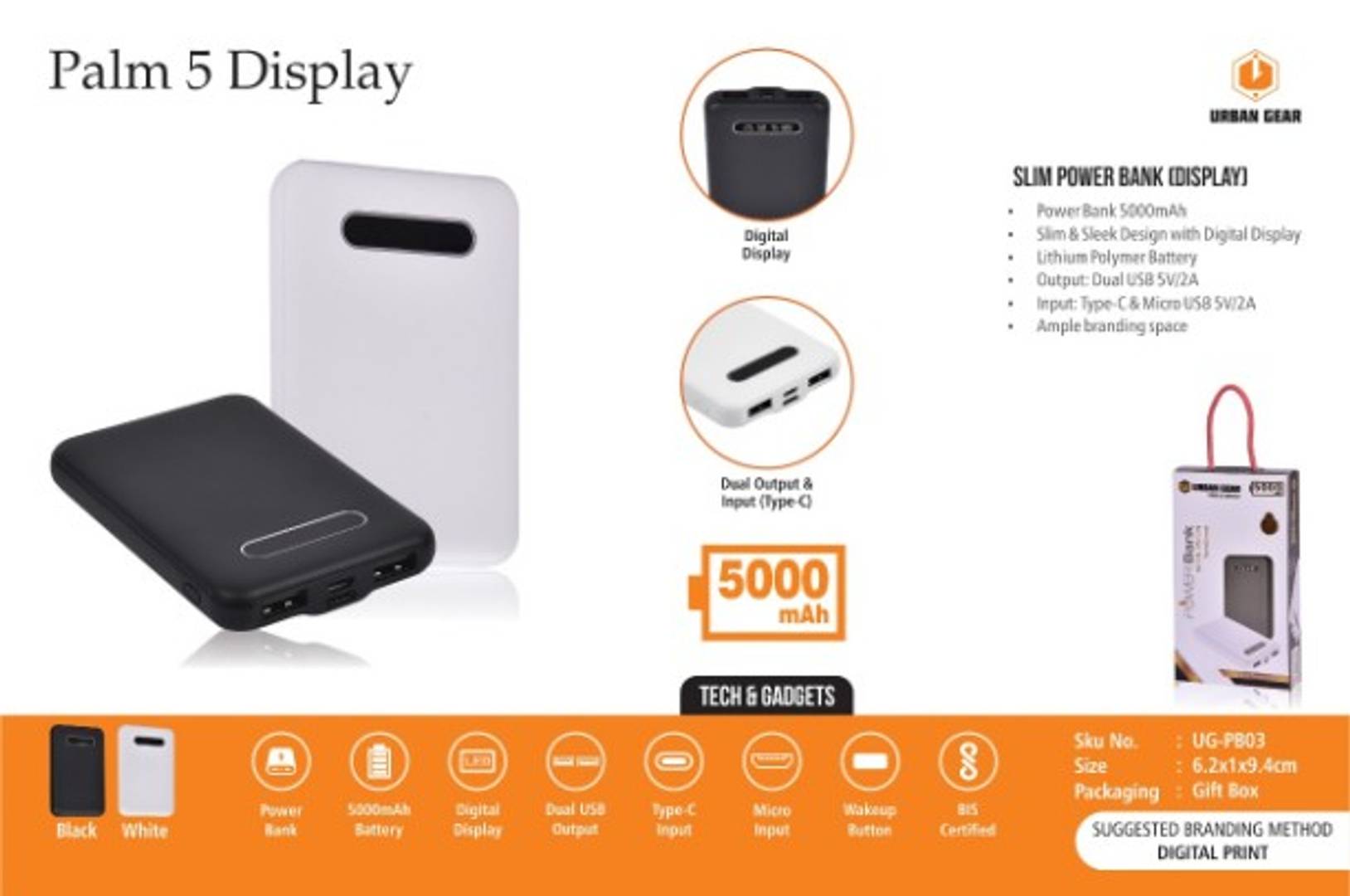 DeMetter Palm 5 Display : Slim Power Bank 5000mAh (Black)