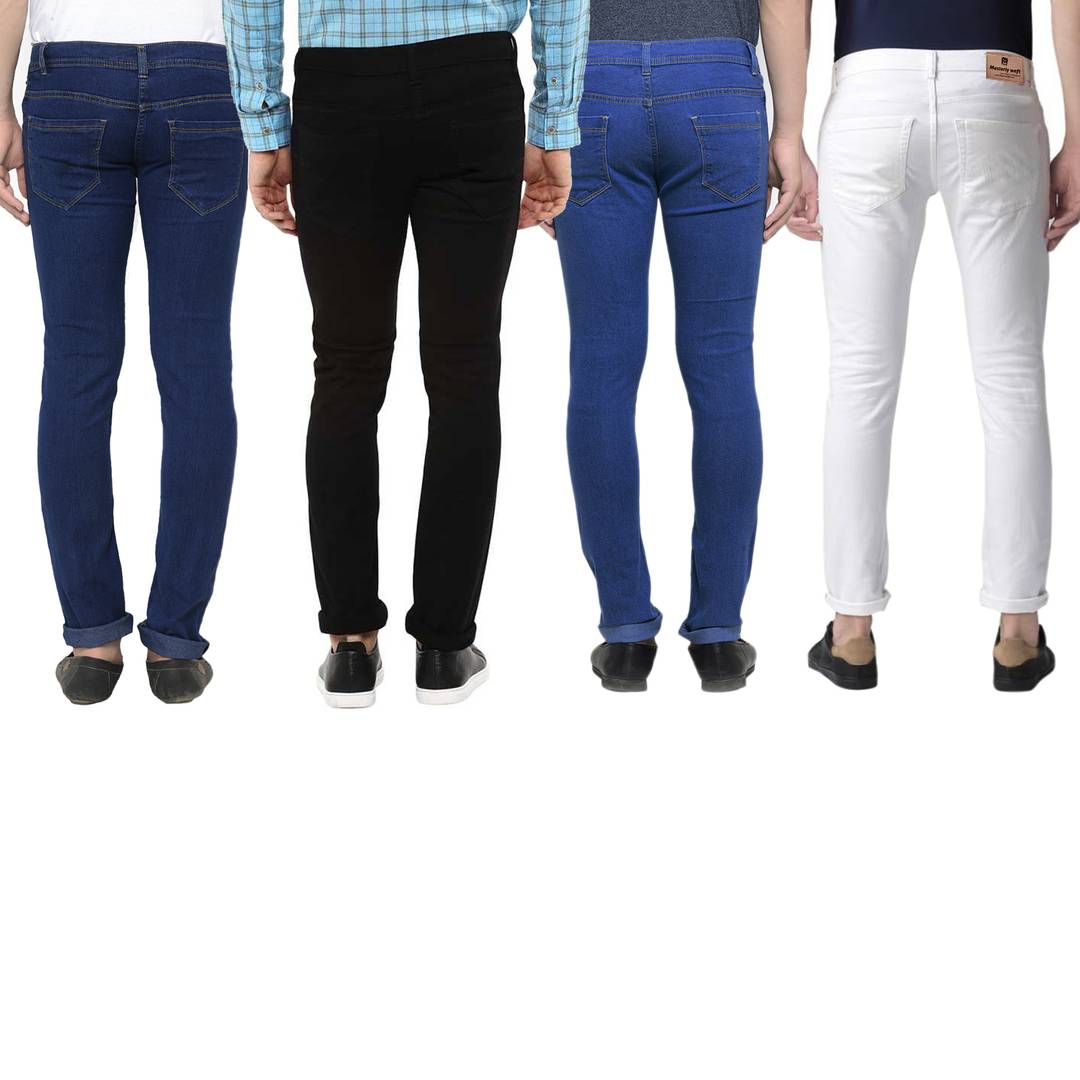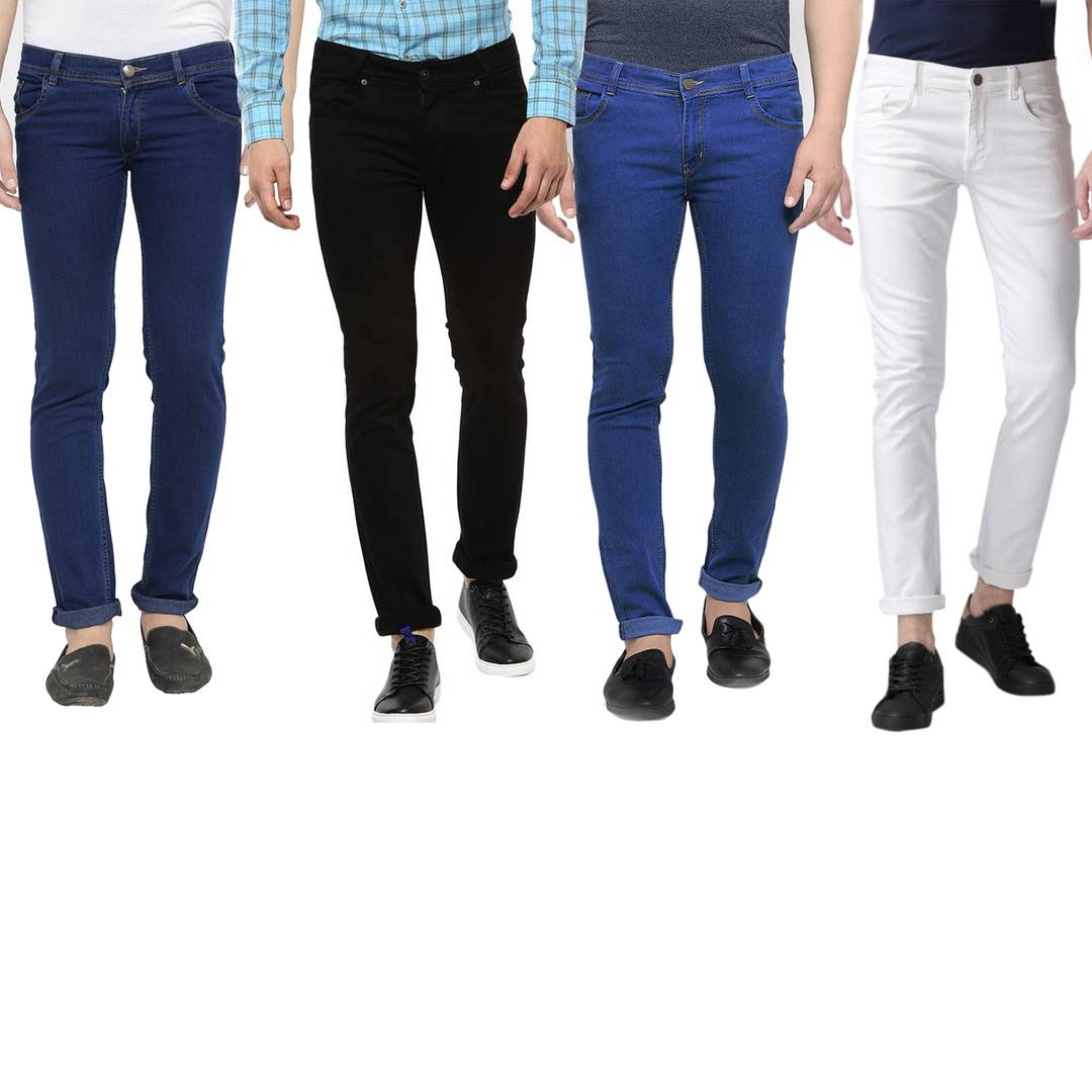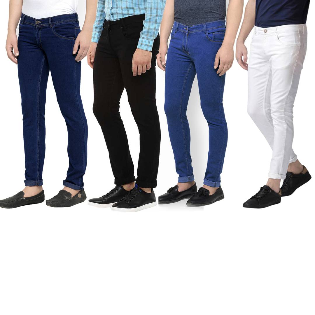 Men's Multicoloured Denim Solid Slim Fit Jeans (Pack of 4)